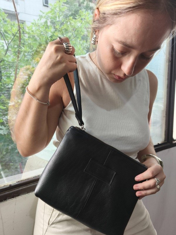 Aliado para llevar en la cartera, de viaje, como porta cosméticos, cartuchera, sobre. Lo hacemos con correa corta de cuero para que puedas colgarteló y usarlo todos los días. Útil y práctico!