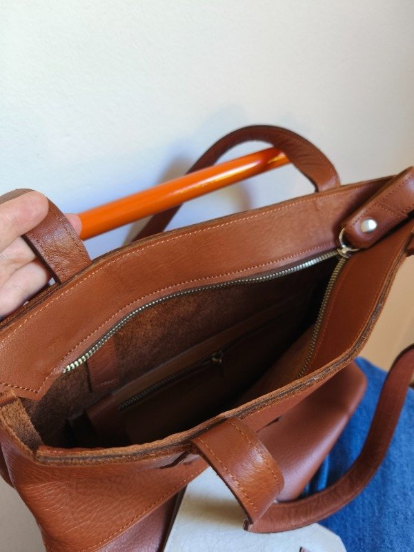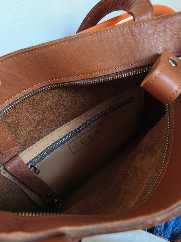 Cartera tipo tote, mediana. Fuelle con cierre metálico YKK. Bolsillo interno de cuero con cierre metálico YKK y mosquetón para encontrar rápido tus llaves.